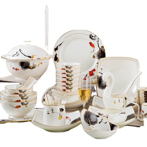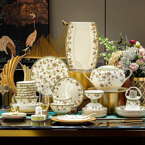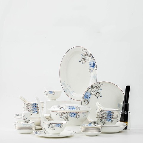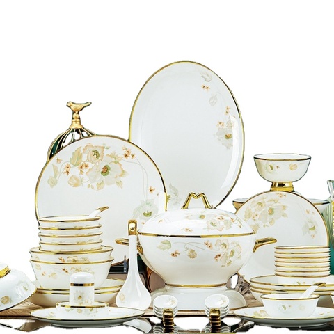 高グレード景徳鎮セラミック食器セットフルファミリーボーン中国食器ボウルプレートコンビネーションプレミアム品質セット