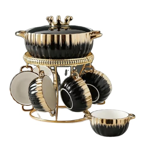2025年限定の新しい北欧風ライトでクリエイティブなホームブラックの豪華なバイノーラルポット食器セット