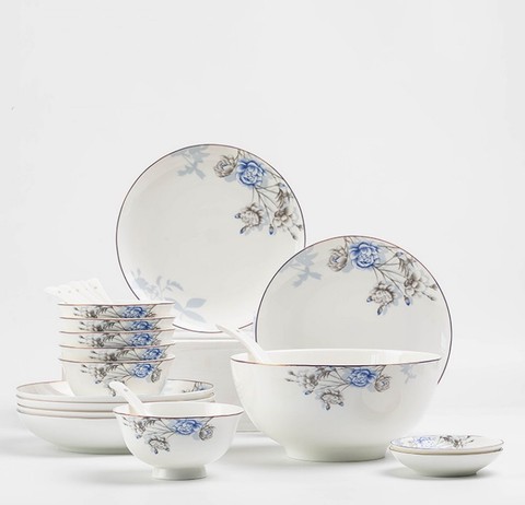 景徳鎮セラミックボウル食器セット中国製骨磁器クラシックスープ食品カトラリープレート家庭用ギフト卸売り